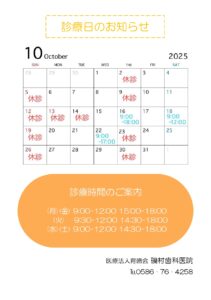 - 【2025年10月】磯村歯科医院の診療時間と休診日のお知らせ